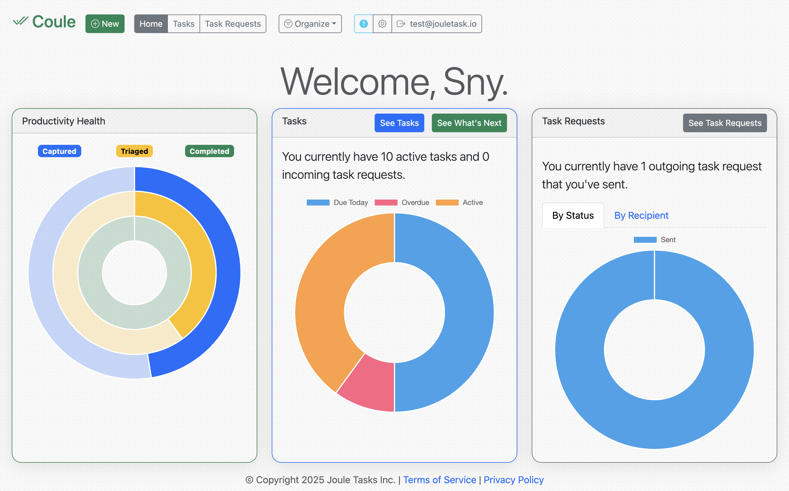 Anyone can send anyone else a Task Request in Coule, and when they do it becomes a trackable object. Think of it as a calendar invite, but for a task, or like a ticket system without all the overhead.